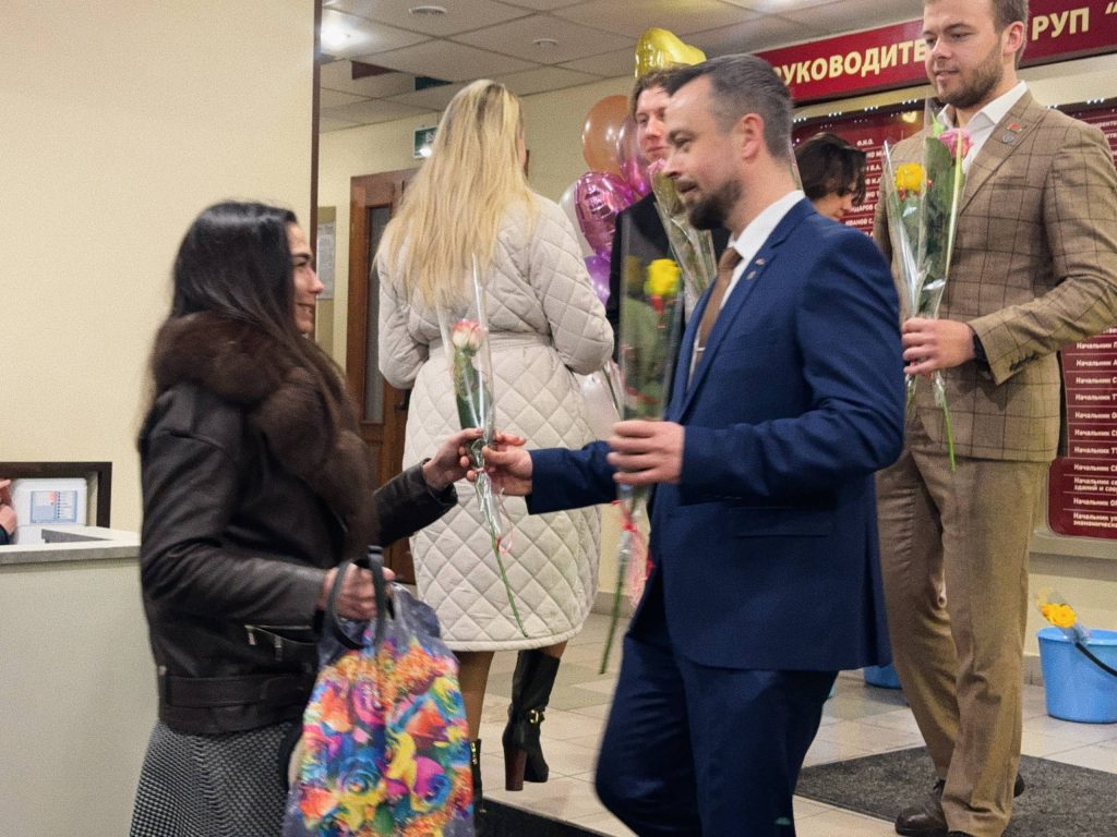 При поддержке первичной профсоюзной организации, мужской коллектив провел незабываемую встречу своих прекрасных коллег на входе в офис с музыкой и охапками цветов.