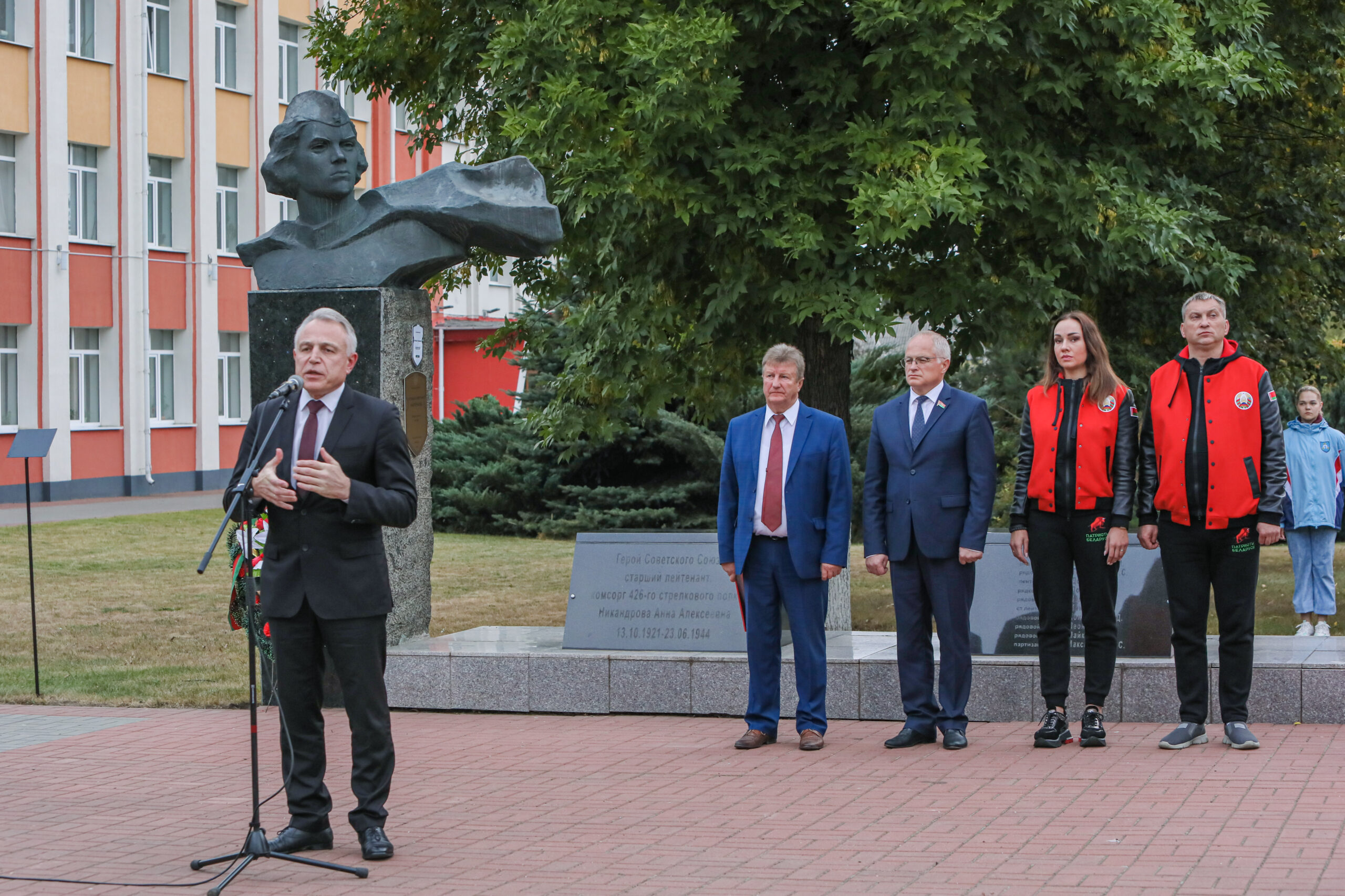Гостей встретили педагоги и ученики средней школы №1. Этим летом учреждению было присвоено звание Героя Советского Союза Анны Никандровой. Событие долгожданное и важное: школьники скрупулезно изучали жизненный путь этой женщины, которая в годы войны трудилась сандружинницей, помогала эвакуировать раненых и работала в госпитале, а также вели переписку с ее родственниками. В итоге школа обзавелась гордым званием, а ее музей – очередной экспозицией. Ее продемонстрировали председателю Федерации профсоюзов Беларуси Михаилу Орде.
