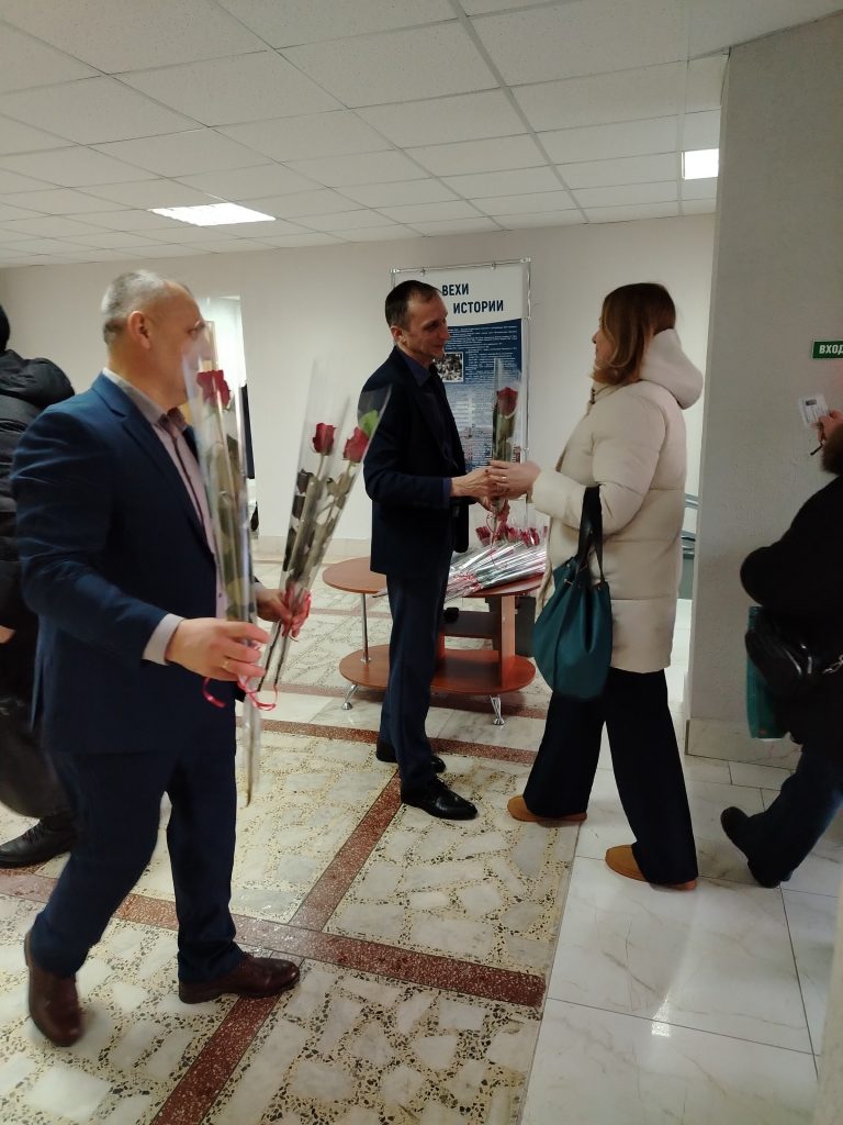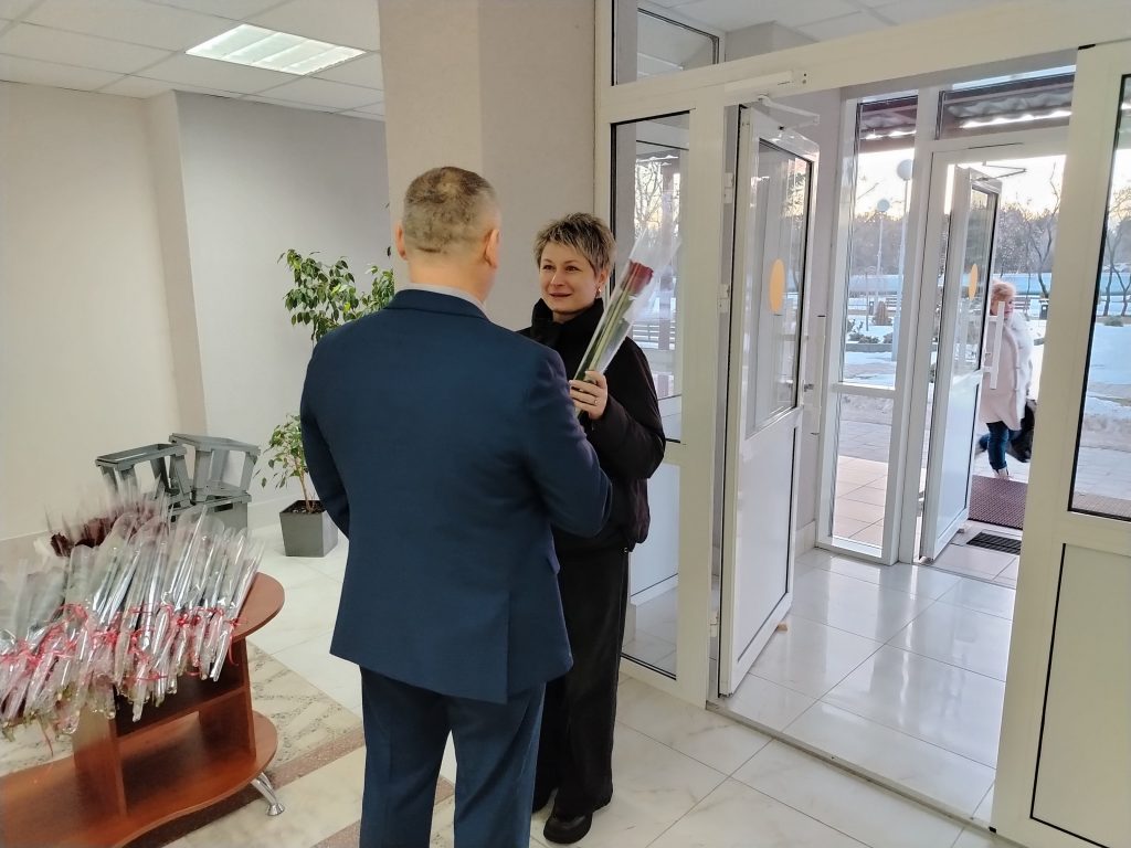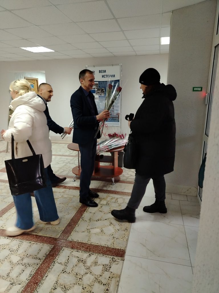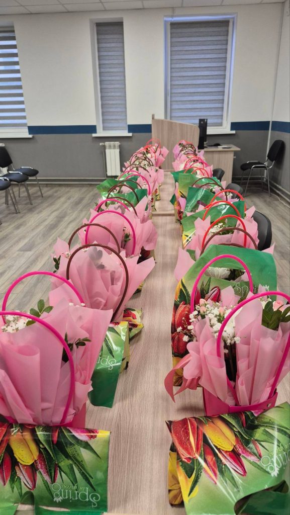 В каждом филиале утро прекрасных девушек начиналось невероятно празднично — они принимают поздравления и приятные подарки.