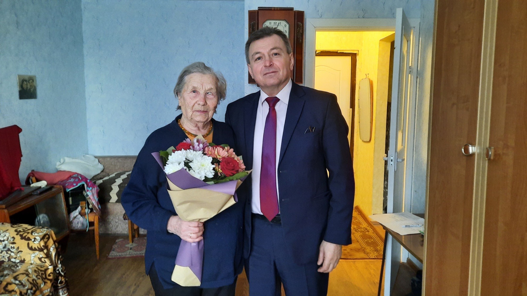В преддверии празднования Дня защитника Отечества председатель ППО филиала «Гомельэнергоспецремонт» Моторенко Дмитрий совместно с заместителем директора Александром Концевым поздравили ветерана ВОВ Глуховскую Софью Адамовну. Ветерану были вручены цветы и подарки. Моторенко Дмитрий в своей поздравительной речи отметил, что весь коллектив филиала передает привет и поздравление, пожелал им крепкого здоровья.