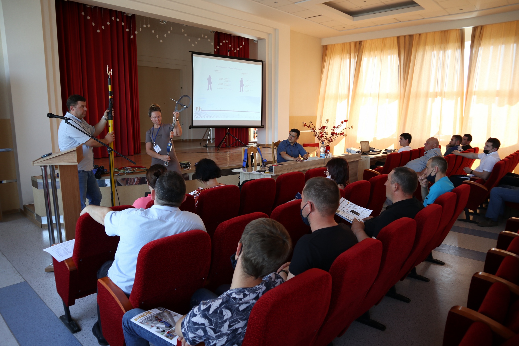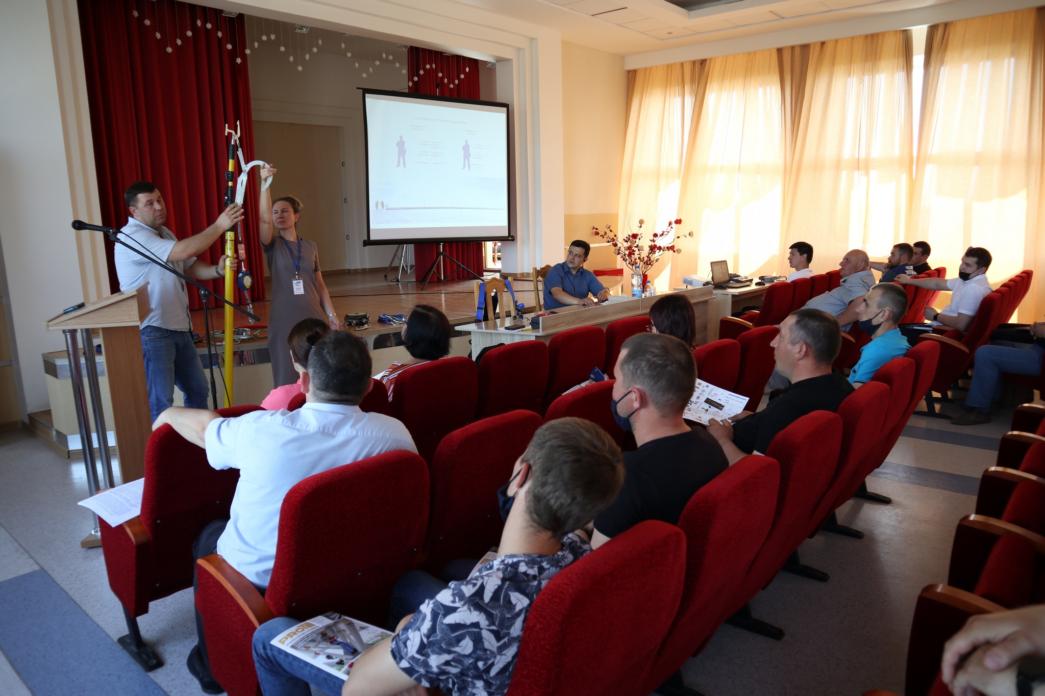 В первой части собрания выступили представители частного предприятия «ИРБИСКОМ» с демонстрационной презентацией средств и систем страховки работ на высоте «Protekt».